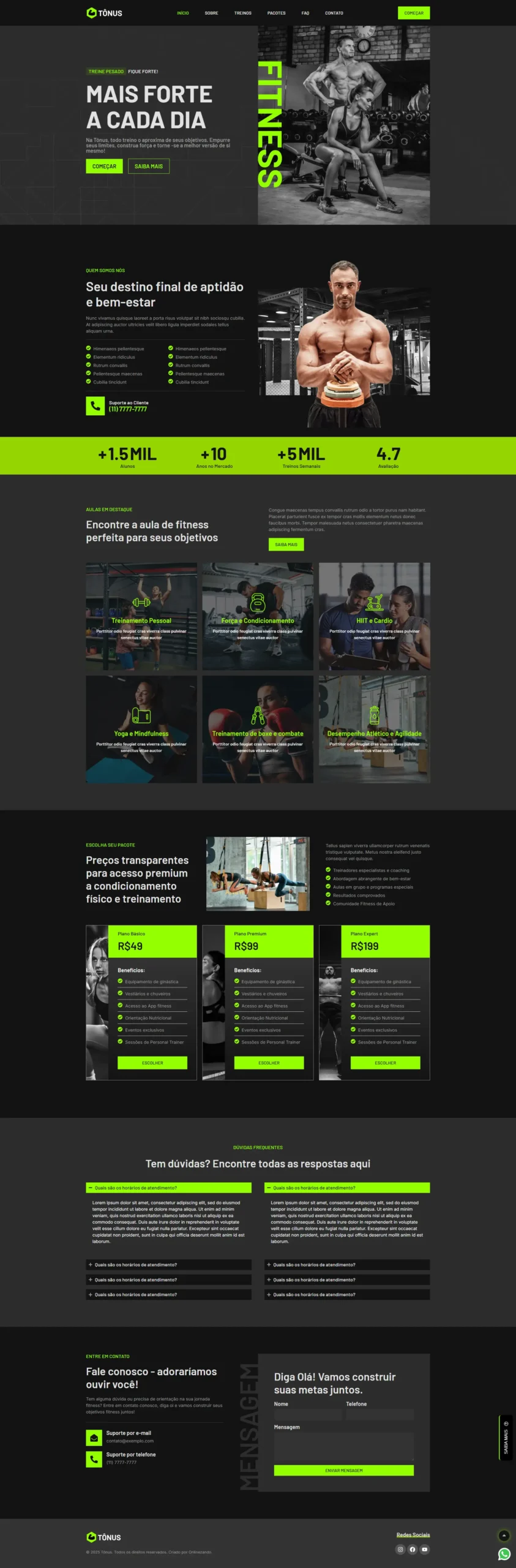 Site voltado para captação de alunos e venda de planos. Layout direto, com destaque para horários, planos e depoimentos.